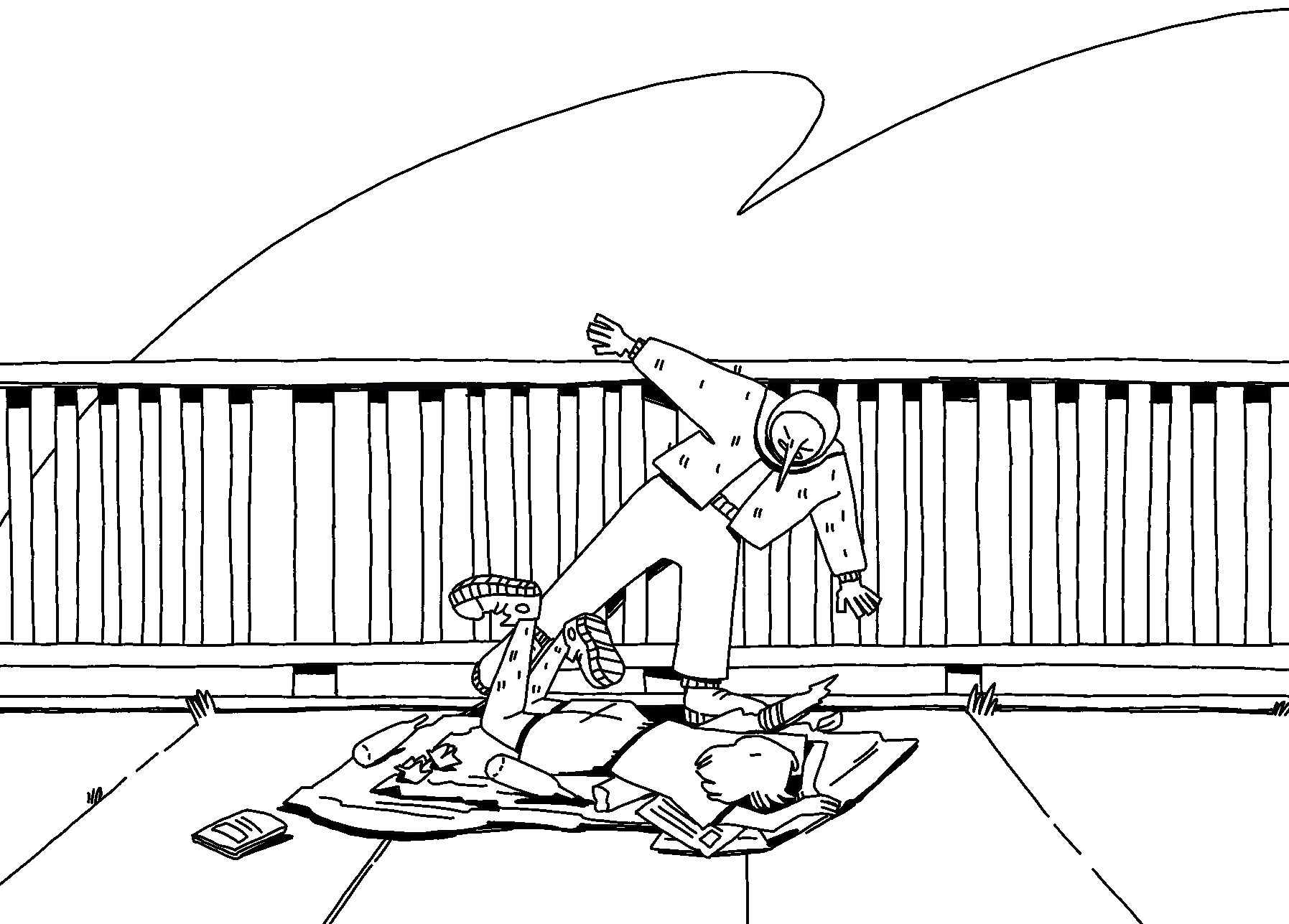 "Fishboy" is a short graphic novel about the life of Bo, a miserable individual who attempts to end his own life but fails. Crying on the way back home, he crashes into a homeless person. The two befriend one another, and Bo decides to challenge himself once again. After a week, he'll try again, this time successfully. Or so he hopes.