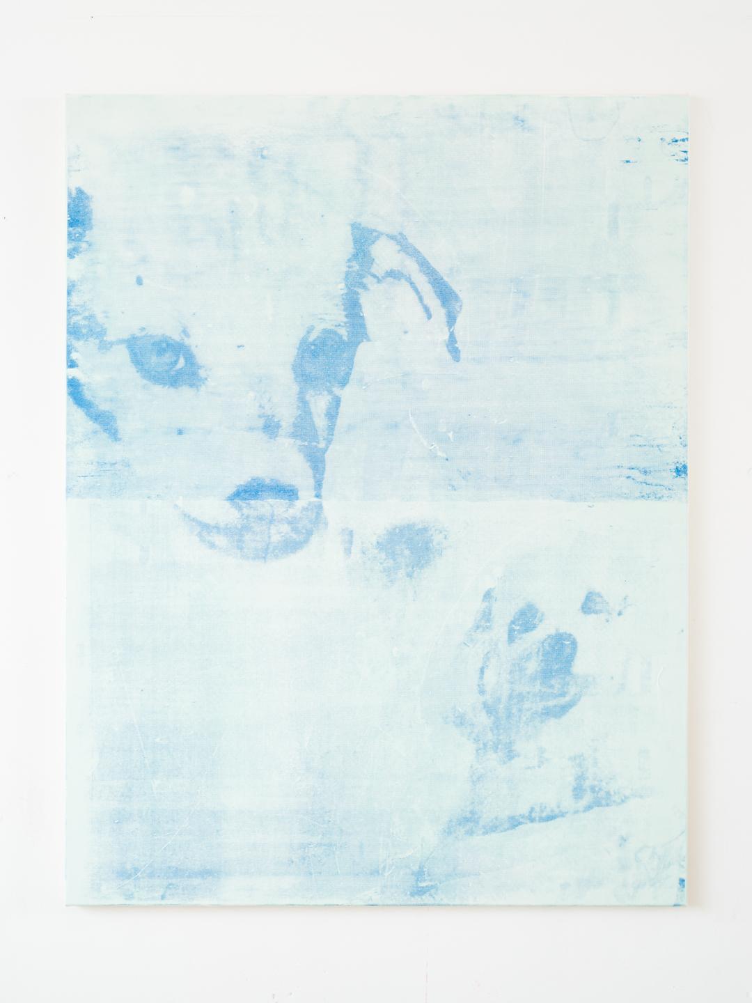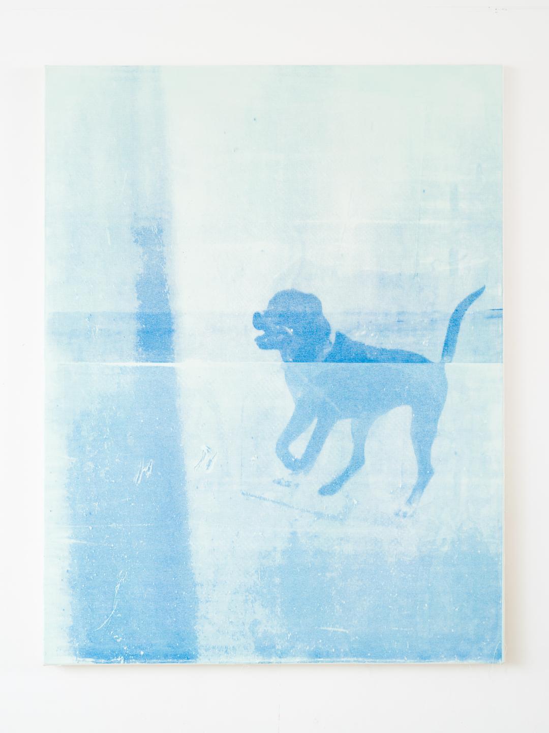 Currently I’m working with found images which have some kind of hollowness within their own context. It feels like the images have been emptied from their original purpose (by life) and are now existing as a ghost-like residue of themselves. My screen-print painting series ‘Friends’, which is based on pictures of dog-portrait-stickers placed on trash bins, is an example of this. As the images were fading away, it felt like there was only a trace left of what once was a portrayed dog.