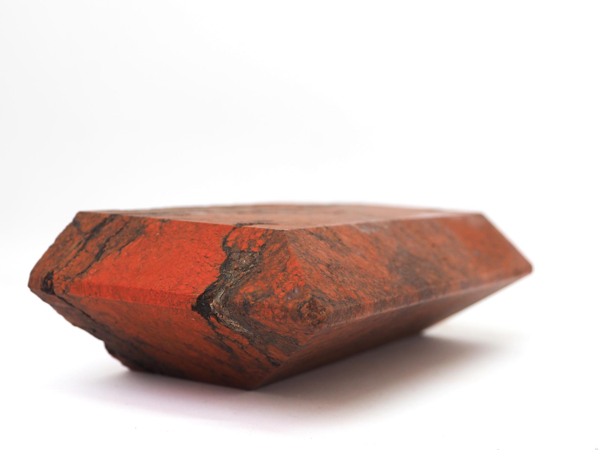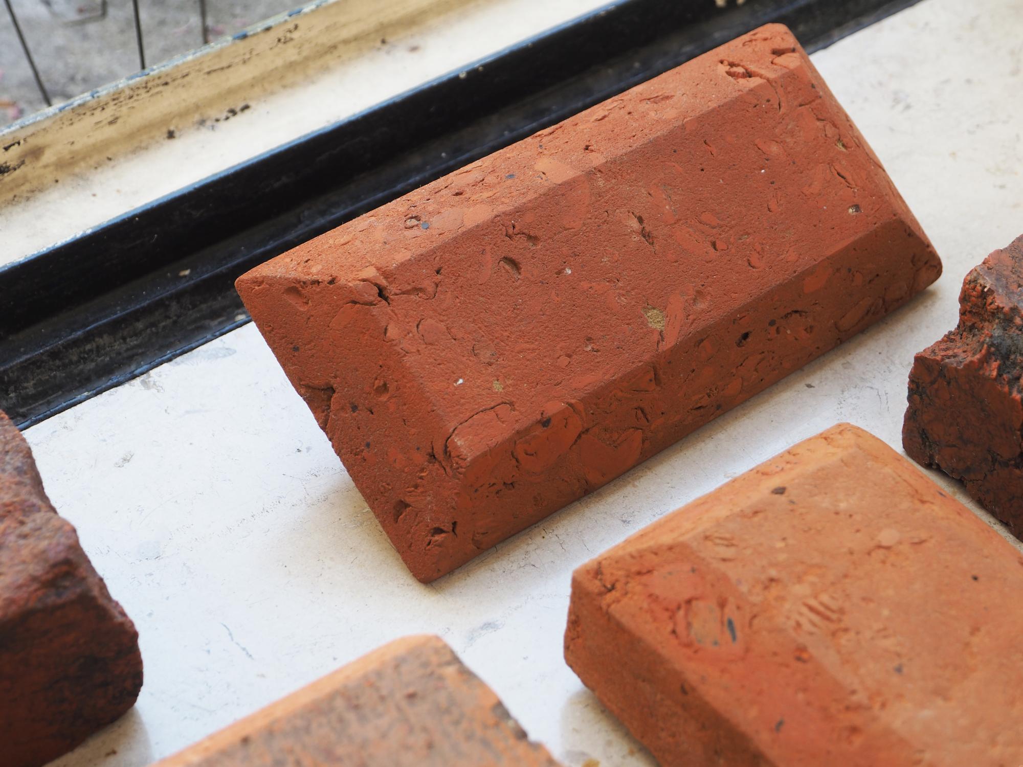I cut the bricks by hand - which is a slow, precise and intensive working method. In doing so, I used both handmade bricks and (in contrast) machine-made ones. In addition to a transformation in form, a material change also took place. Complementary to the brick series, I cut a number of gemstones in brick format; from a crystal similar to red jasper.