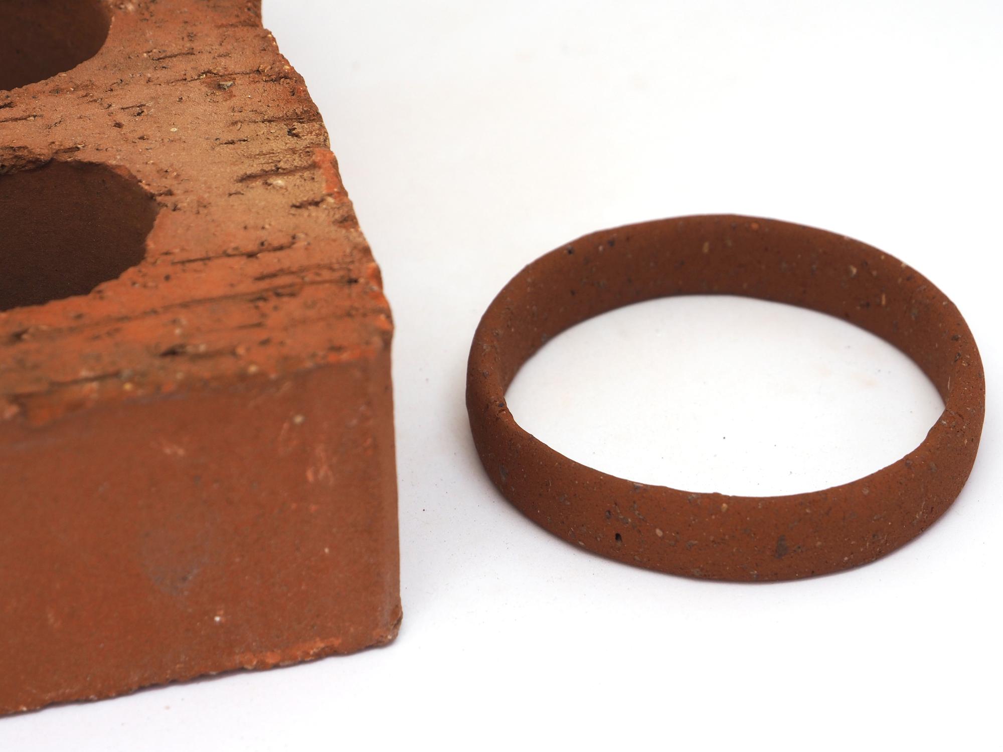The dimensions of the mass-produced brick that seamlessly relate to human proportions (and especially a hand) captured my imagination. The three holes in the brick made me curious and I wanted to study the brick from the inside out. The hole in the stone became a bracelet. That simple act of cutting and filing the stone, convinced me to further study the brick as a connecting element between architecture and jewelry.