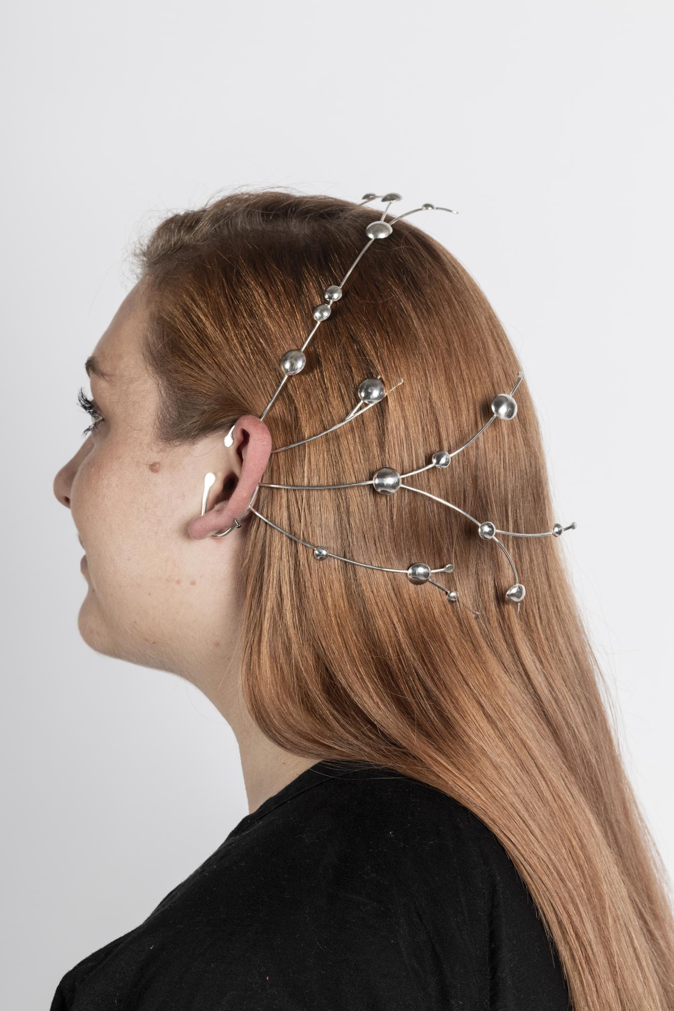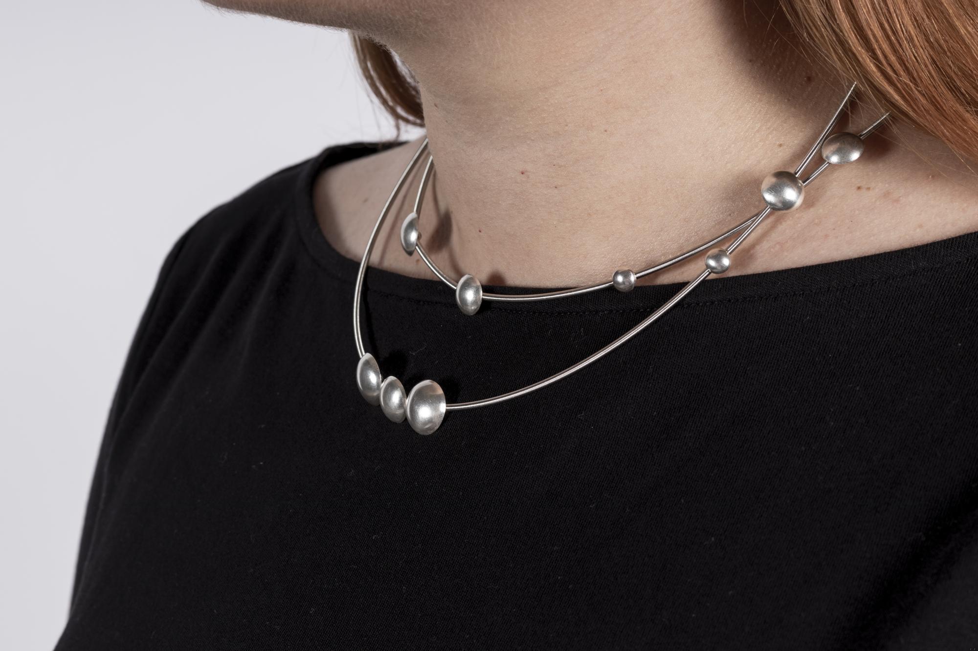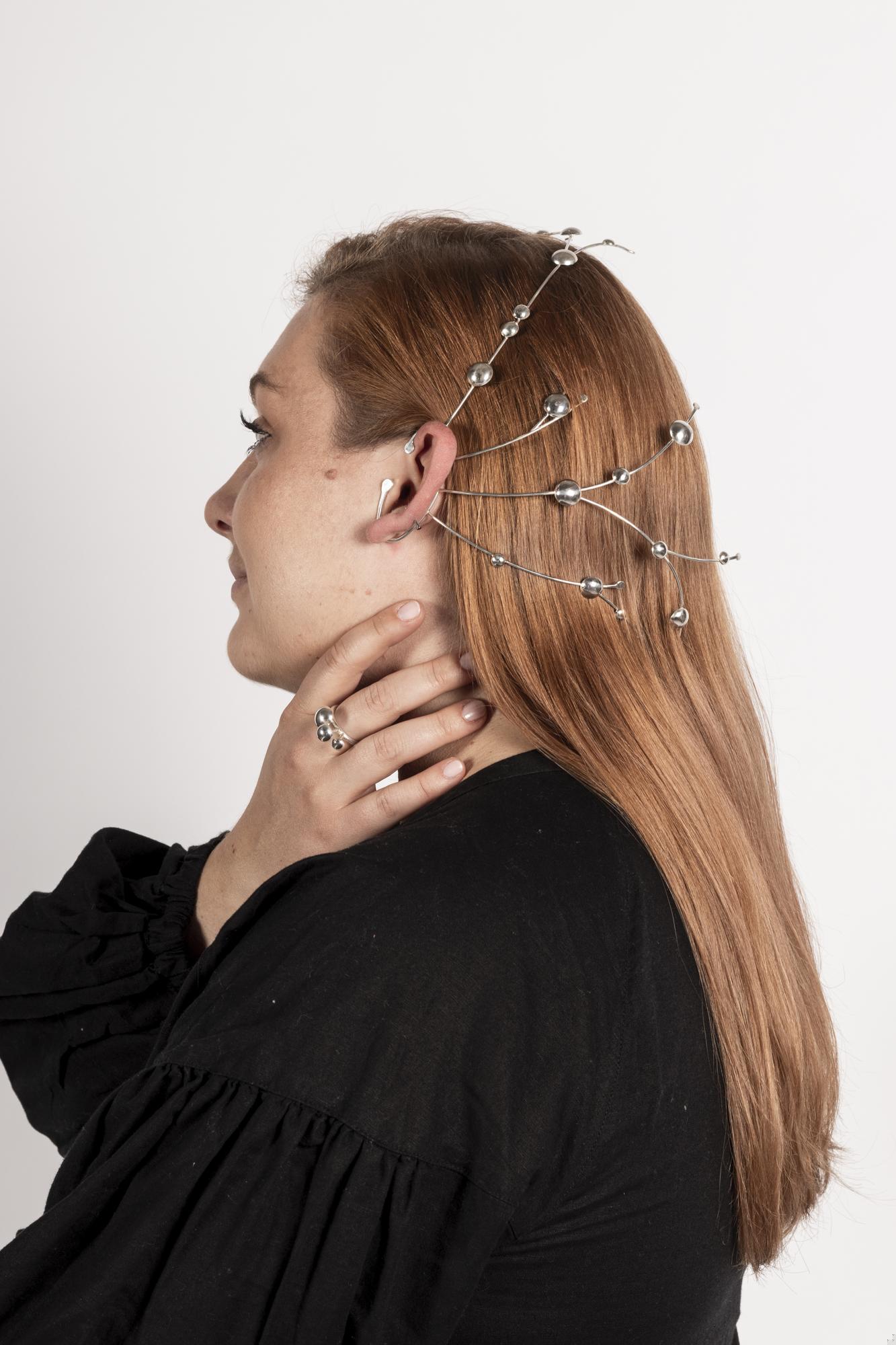 I stayed true to my previous technical education while designing and manufacturing a collection of couture (occasion wear) and prêt-à-porter (everyday wear) jewellery pieces in traditional techniques and material (i.e. silver).