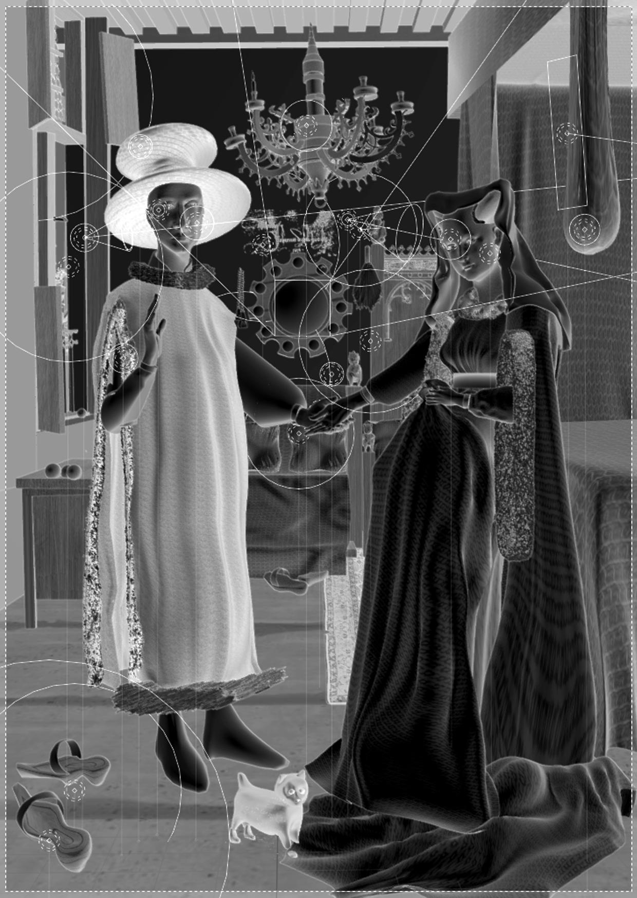 Ik heb een digitale, driedimensionale vertaling gemaakt van het complexe, subjectieve perspectief in het Arnolfini-portret van Jan van Eyck. Het perspectief in dit schilderij lijkt op het eerste zicht te kloppen, maar doordat je het schilderij in mijn 3D versie uit verschillende hoeken kunt zien, zie je al snel dat dit in de werkelijkheid niet het geval is.