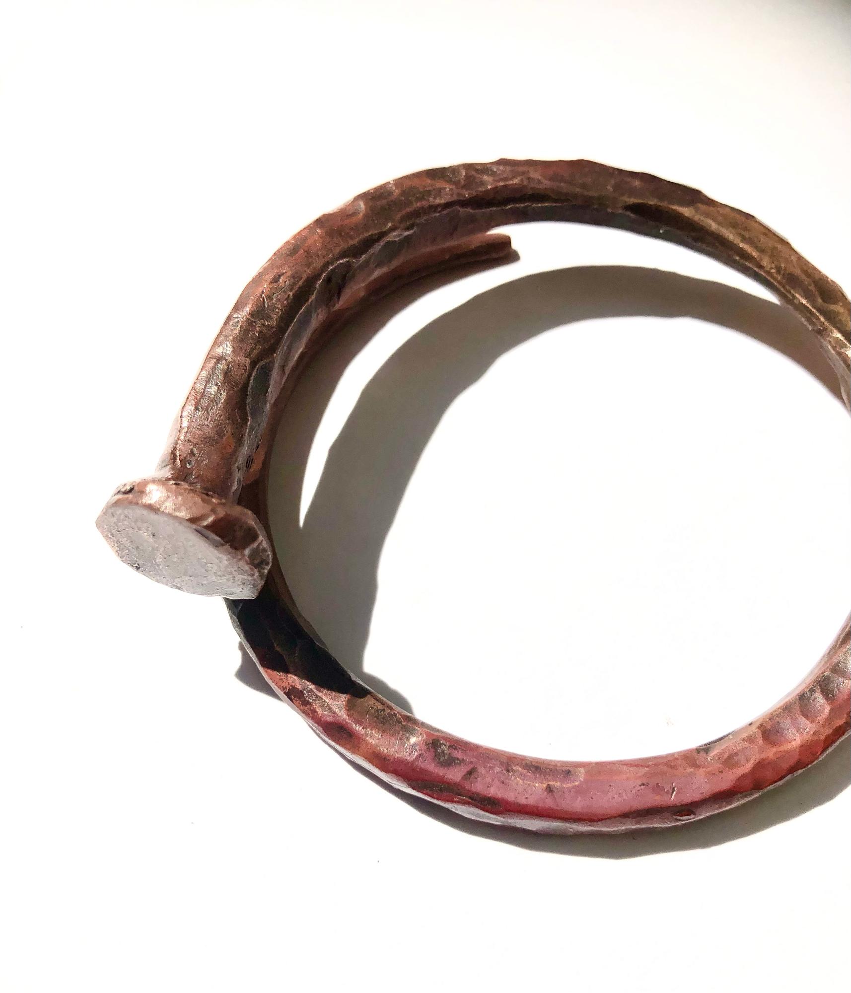The copper bracelet (juste un clou en colère) acts as a remnant of the emotional outbreak, it's also a rebellious reference to Cartier's exclusive nail bracelets (juste un clou) that turns the nail into a status symbol.