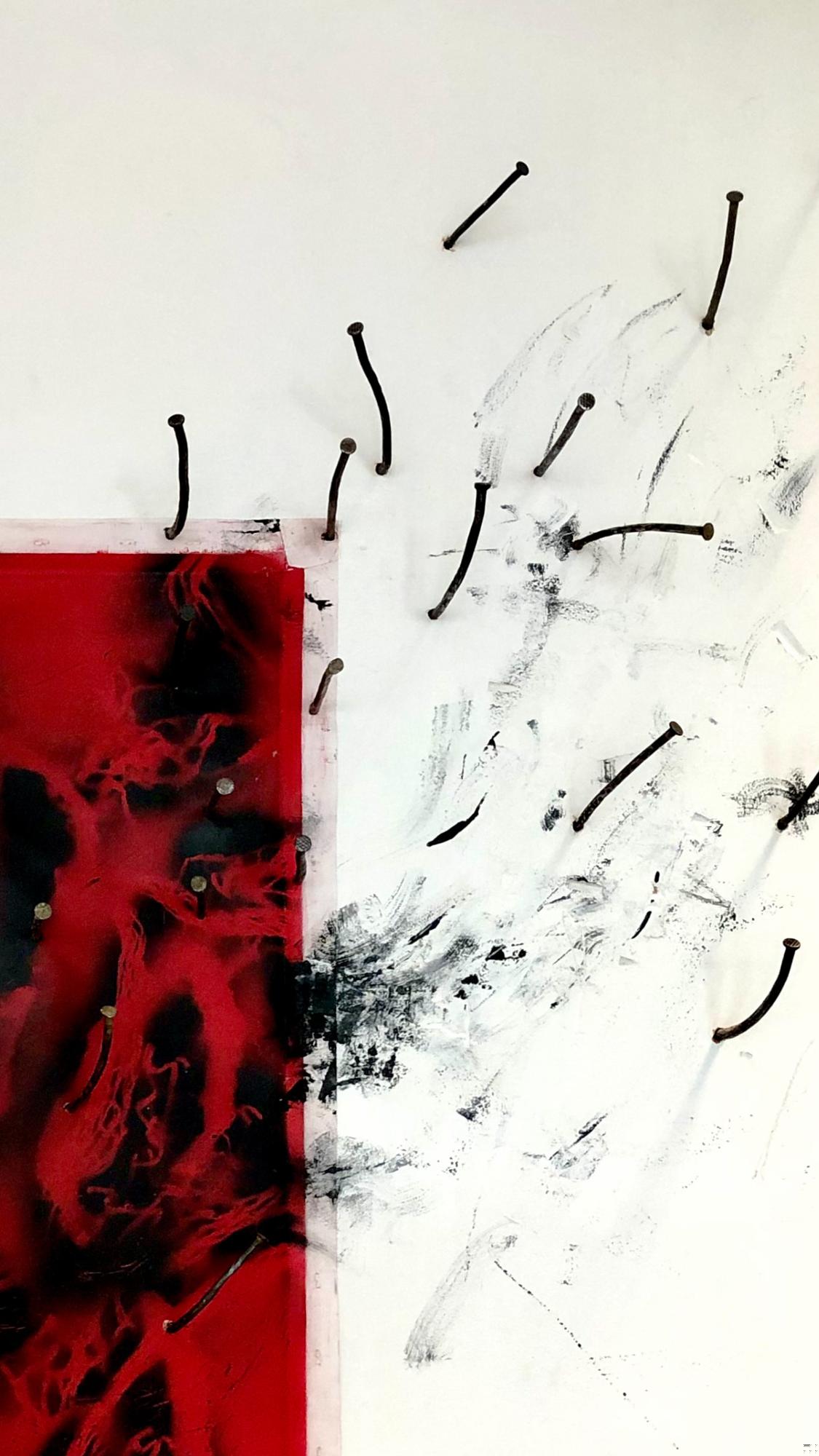 My project focuses on the outbreak of contained feelings like anger and stress, I used the beating of my heart and the forging of the nails as a guide through my work.