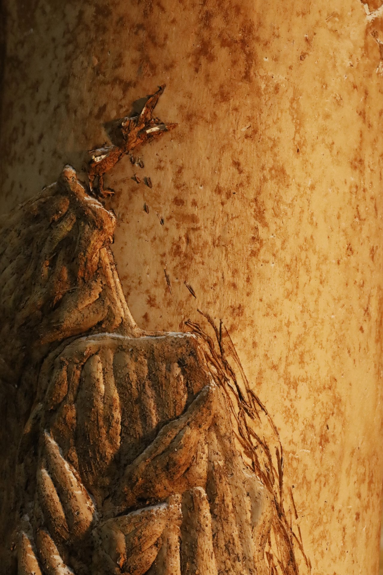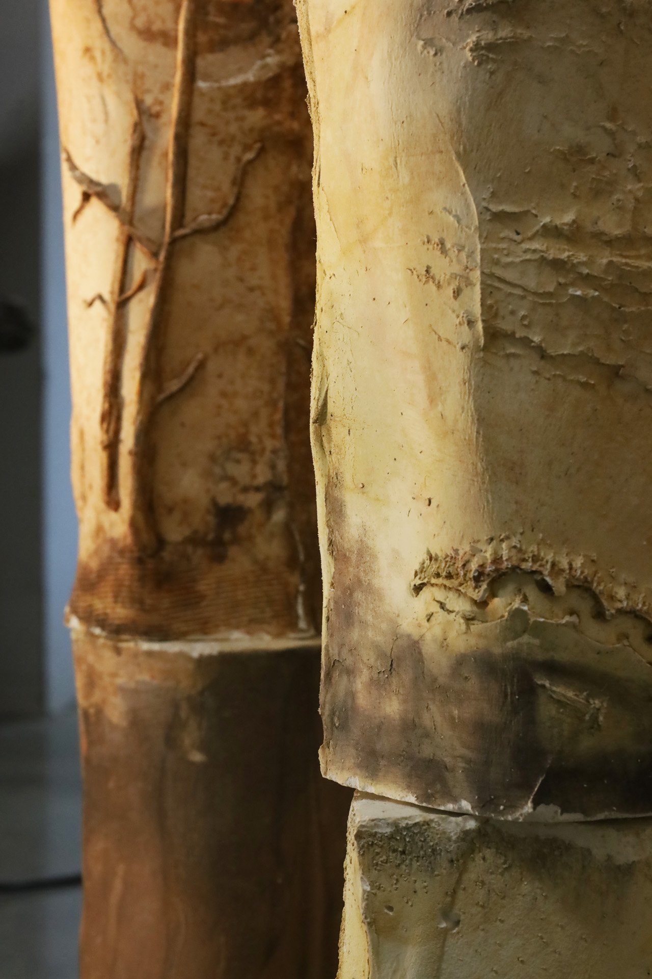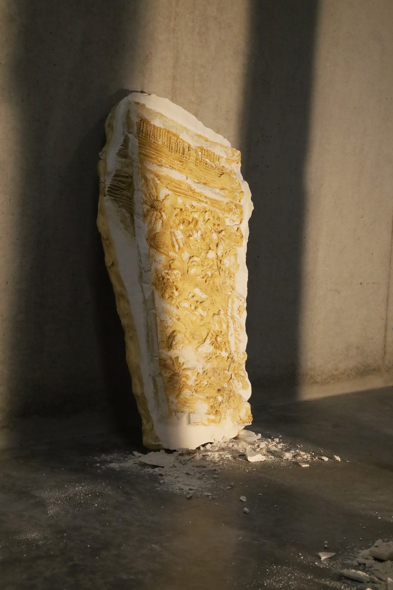 Mijn kunstproject, getiteld "La Révélation de Mes Ruïnes", is een verkenning van vergankelijkheid, tijd en persoonlijke herinneringen, weergegeven door een installatie van gipsen sculpturen. Door het gebruik van plaaster en klei-afdrukken, ontstaat een archeologisch effect dat de kwetsbaarheid en tijdelijke aard van het bestaan weerspiegelt. Als iemand die veel objecten verzamelt, integreer ik enkele in mijn werk, waardoor het een persoonlijke en intieme dimensie krijgt. Natuurlijke elementen zoals verwelkte bloemen, symbolen van vergankelijkheid en tijd, spelen een belangrijke rol in mijn creaties. De esthetiek van deze vergankelijke bloemen inspireren mij en versterkt de thematiek. Mijn werk belichaamt een voortdurende zoektocht naar het vastleggen van de cycli van het leven en de balans tussen herinnering en vergankelijkheid. De installatie nodigt het publiek uit om stil te staan bij vergankelijkheid, de impact van persoonlijke herinneringen. Door het tonen van deze gelaagdheid en de fragiliteit van de materialen, benadruk ik hoe herinneringen net zo kwetsbaar en vergankelijk zijn als de materiële wereld zelf. Elk stuk in deze installatie vertelt een verhaal van transformatie en verlies. "La Révélation de Mes Ruïnes" is een uitnodiging om na te denken over de onophoudelijke cyclus van leven en verval, en hoe deze ons definieert.