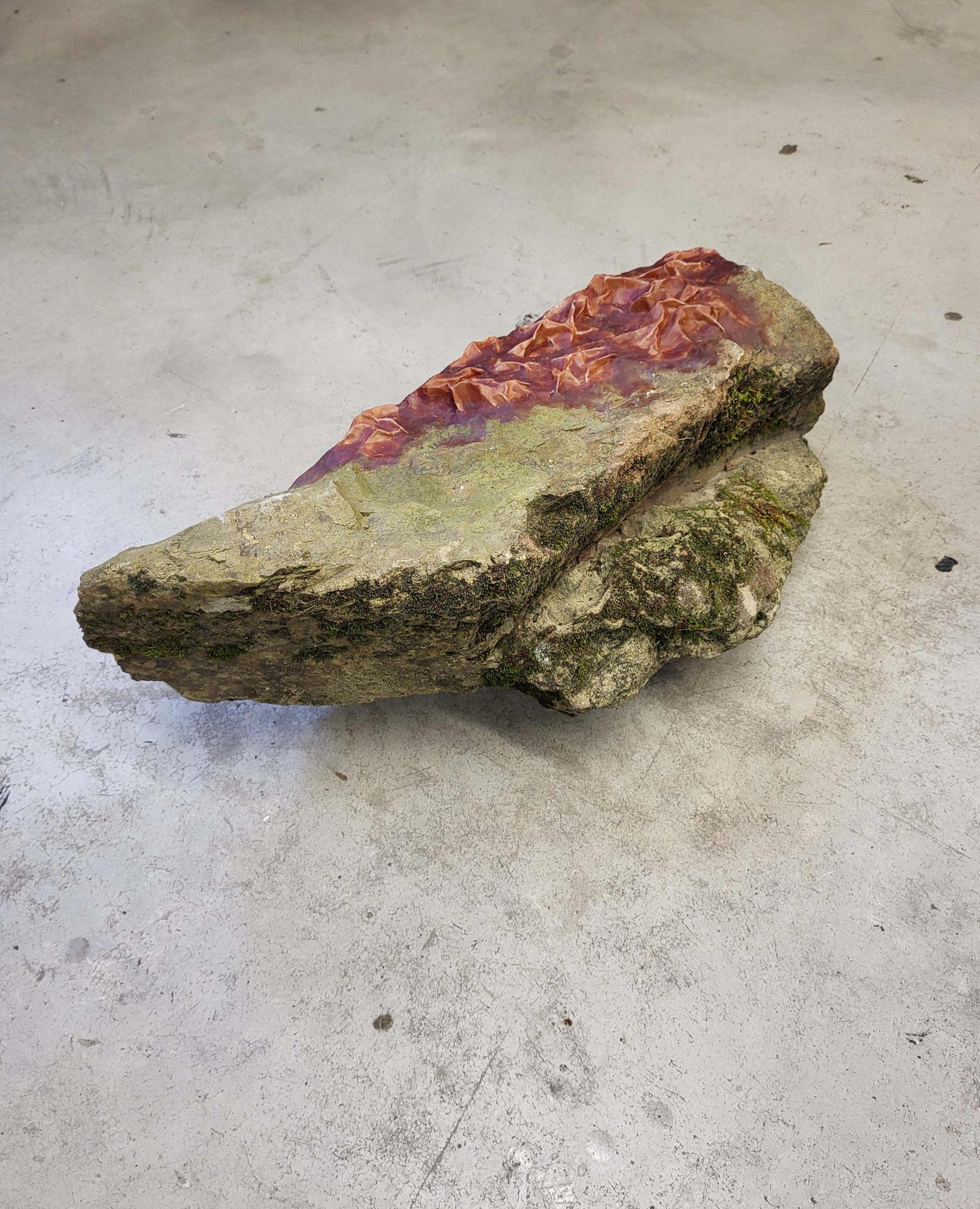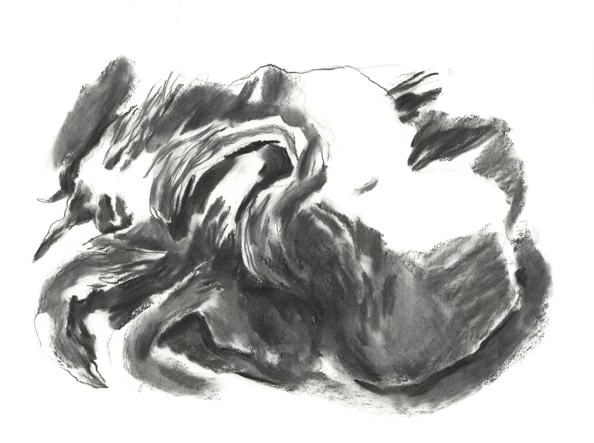 Het project heeft uiteindelijk de vorm aangenomen van een serie van houtskooltekeningen, die getoond worden in een compositie aan de muur. Een deel van de opstelling bestaat uit vreemde objecten, die verwijzen naar een landschap… of is het nu iets dierlijks? Deze vormen uit steen, schors, papier en boetseerwas vormden een inspiratie voor de houtskooltekeningen en vice versa. Een projectie van de vervaagde omgeving waarin het project zich afspeelt vervolledigt het onderzoek.