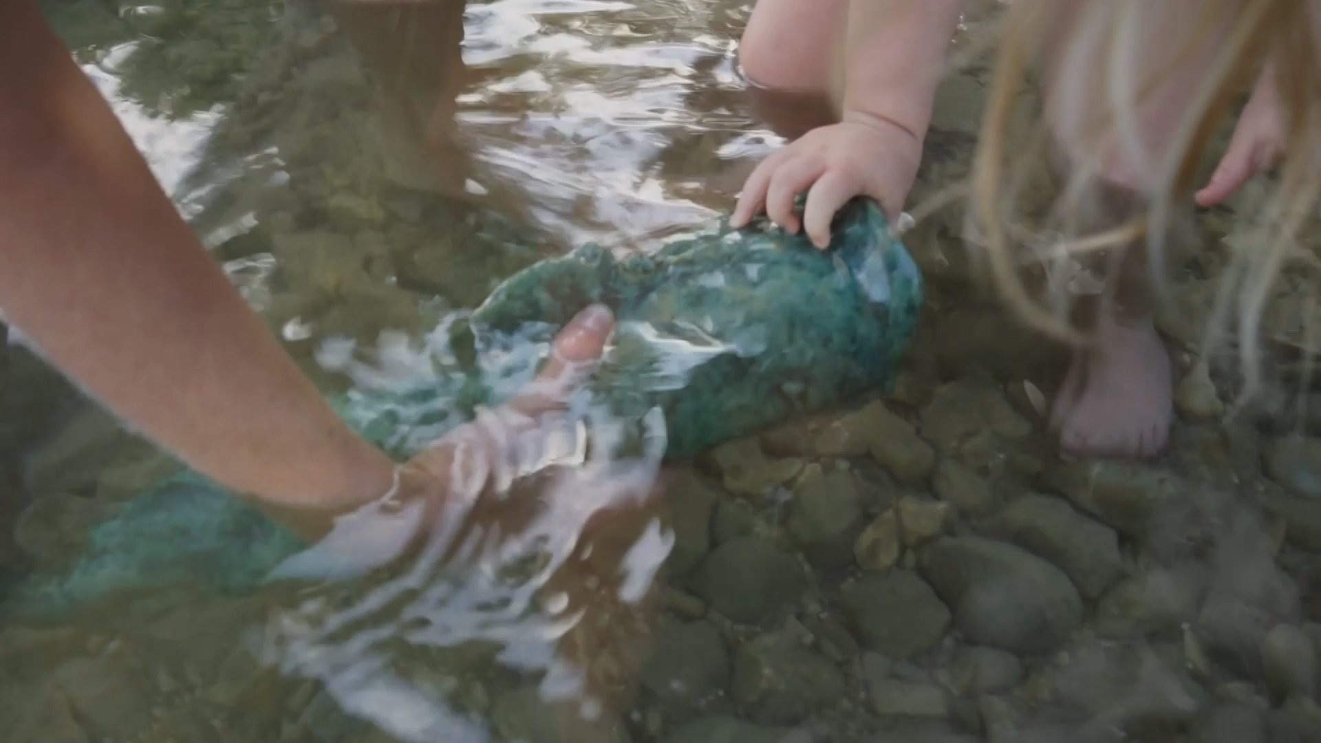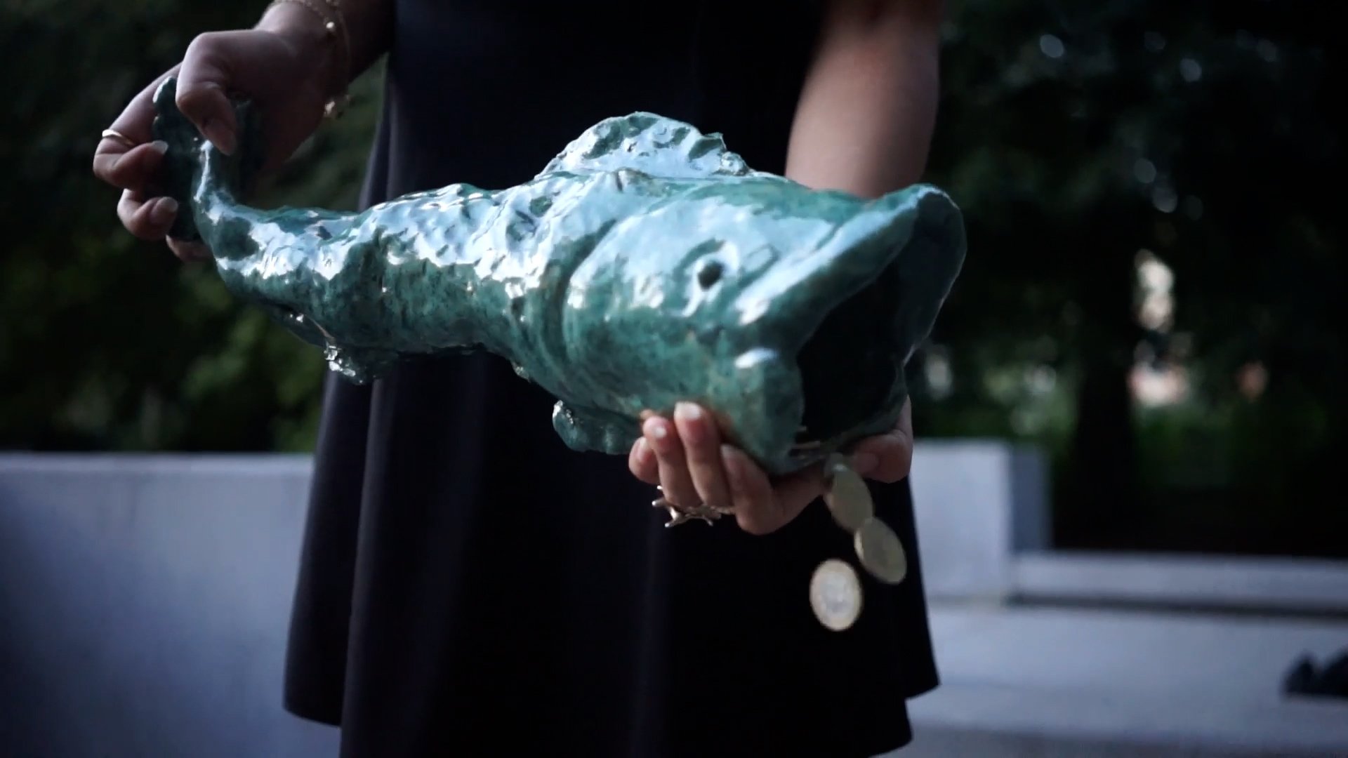 In the film the figure of a fish human stands as a metaphor for the genealogy of the universe but also that of myself. We follow the journey of a ceramic fish as it travels from one hand to the next, from place to place, from one time to another. We encounter grandmothers, mothers and daughters, experiencing a poem about the past, present, and future of human and more-than-human inhabitants of the planet. The bench was modelled after those set near the river in Mainz, where it was first exhibited as part of the exhibition Unextractable: Sammy Baloji invites, at the Kunsthalle Mainz. The starting point of this work was a poem I wrote in a workshop during my Premaster with Sammy Baloji.