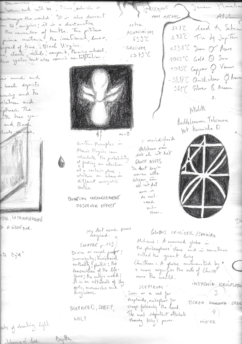 A journey into my individual experience, reconnecting with universal subconscious symbols. By observing my surroundings and researching meaning, I focus on personal development, reworking age-old symbols into my drawings. The result is an artwork reflecting on personal evolution through an alchemical process, offering recognisable yet sometimes unreadable imagery.