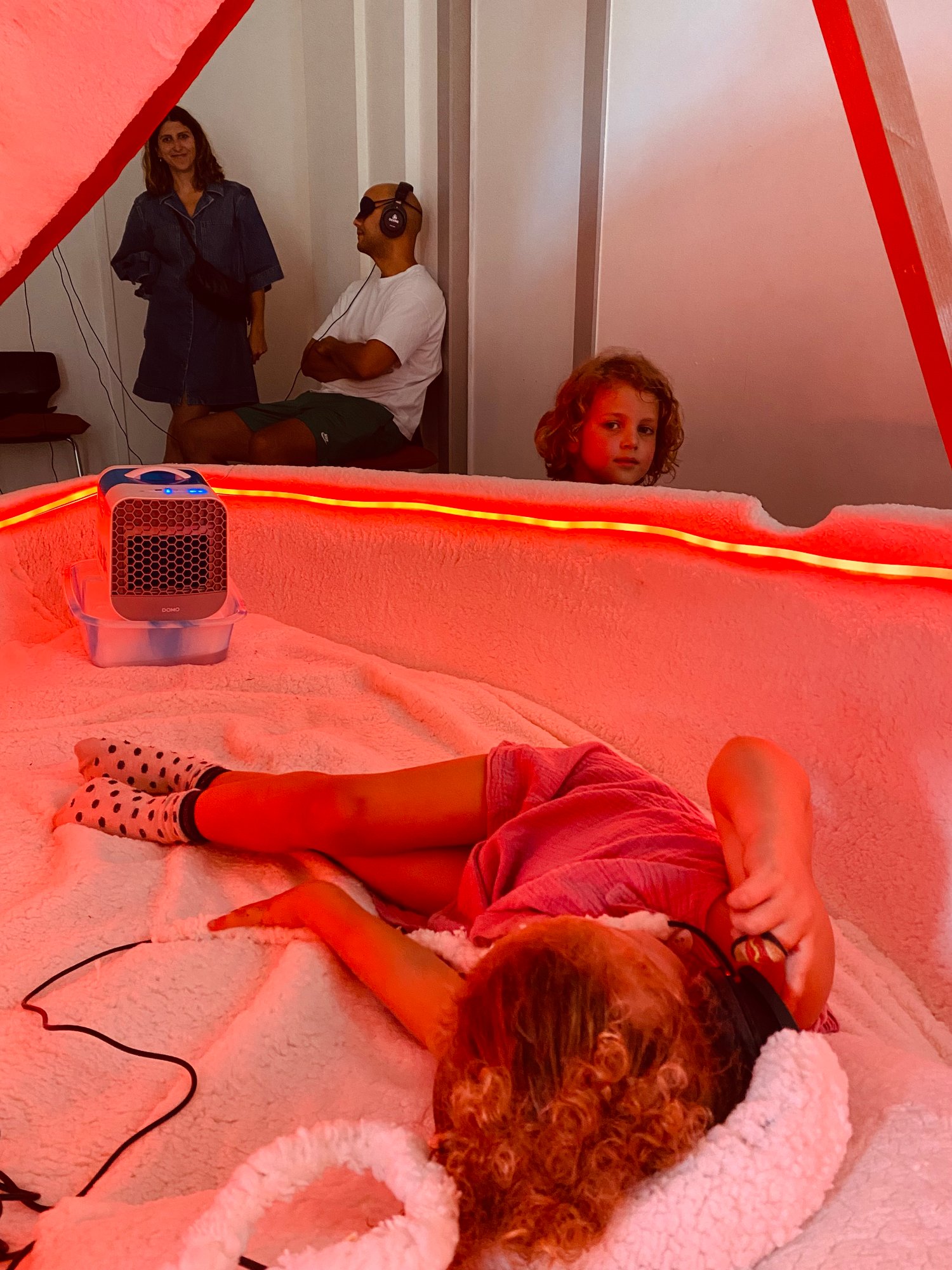 The installation unfolds across two spaces. The first space features the sounds of birth, while the second houses the Egg of Stories and the Fertility Calabash. Visitors can choose to lie inside the Egg to listen to the soundscape, or experience it through the Calabash.