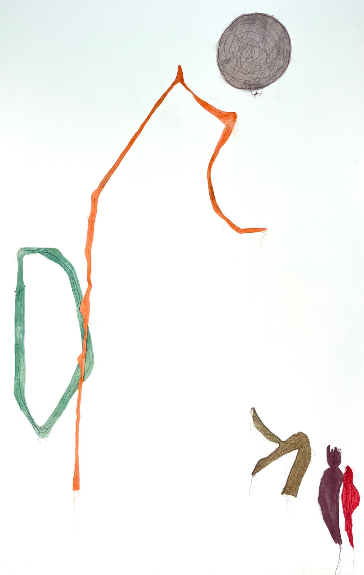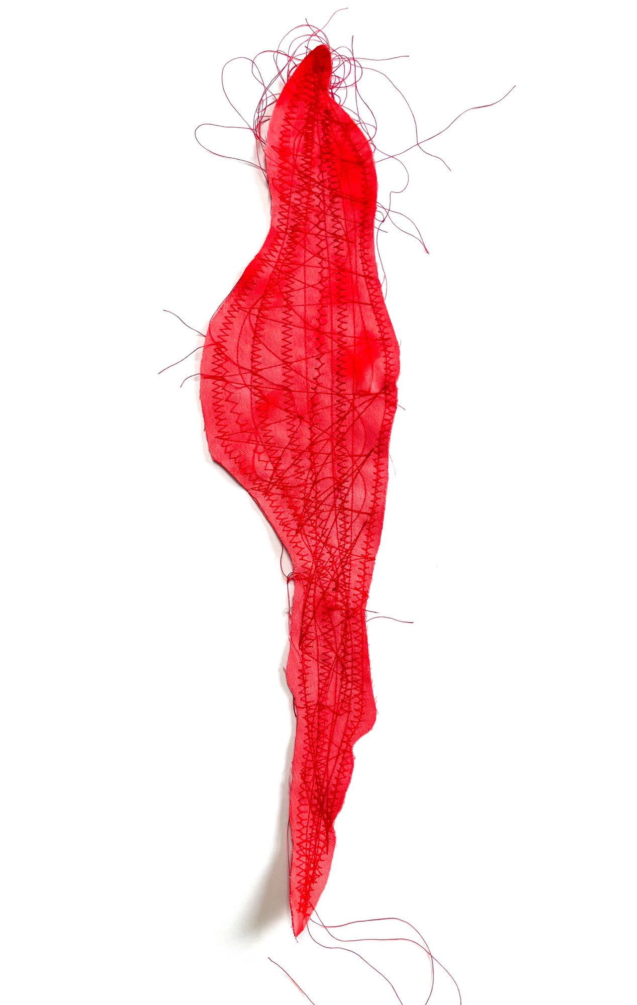 My work begins with walks in nature, where I create paintings based on what catches my eye. From these paintings, I extract lines, shapes, and colors, which I then translate into textiles. I work with fabric using paint and a sewing machine, in a slow process of observing, feeling, and repeating. Each piece becomes a tangible memory of a landscape or a moment.